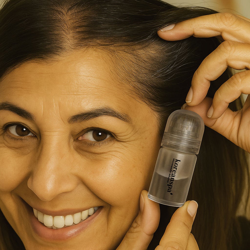 ScalpInfusion is a breakthrough at-home hair regrowth system developed in partnership with top Korean scalp clinics. It uses ultra-fine 24k gold microneedles to painlessly create microchannels in your scalp — reactivating blood flow and delivering growth-activating nutrients directly to your follicles.